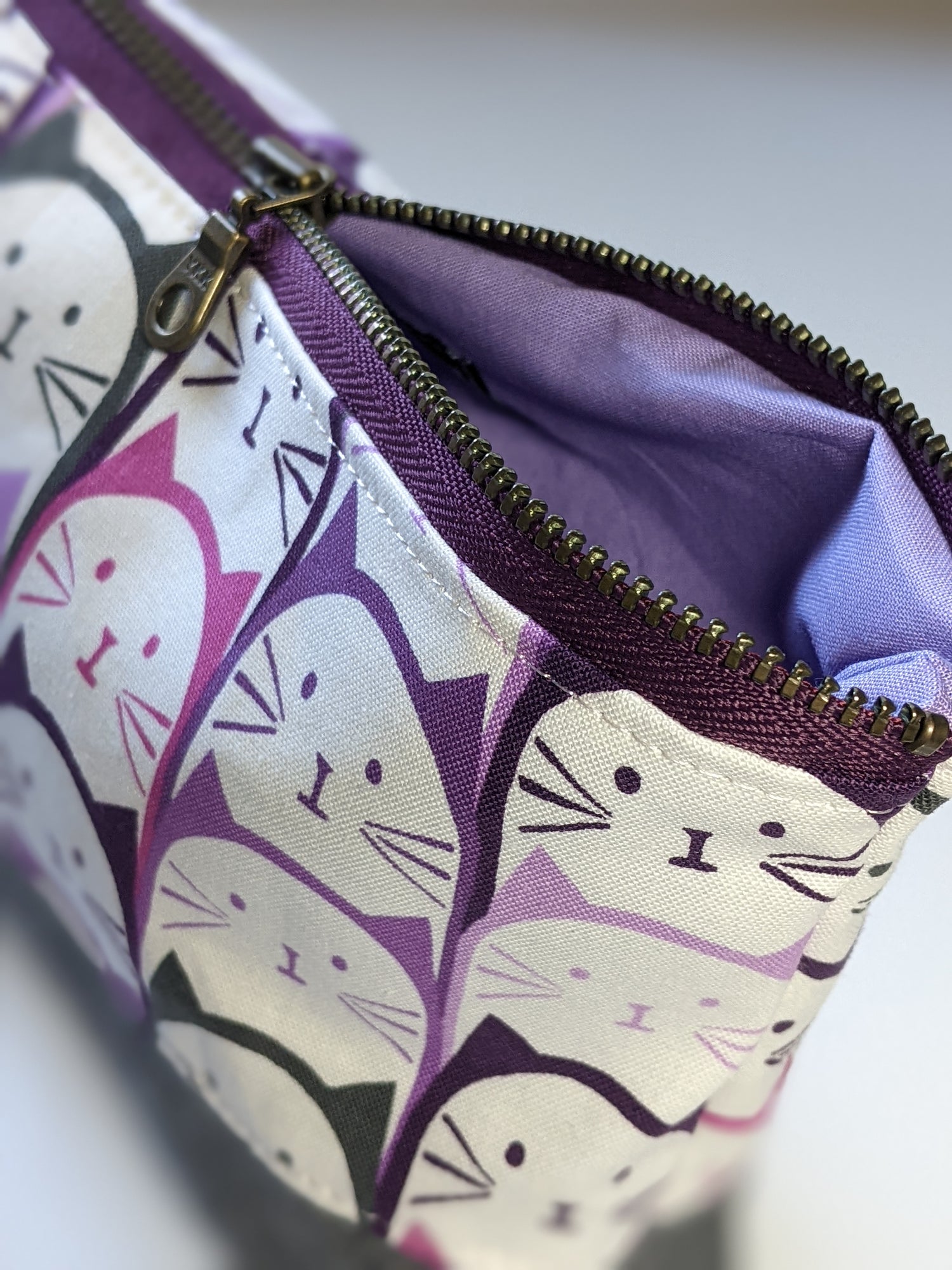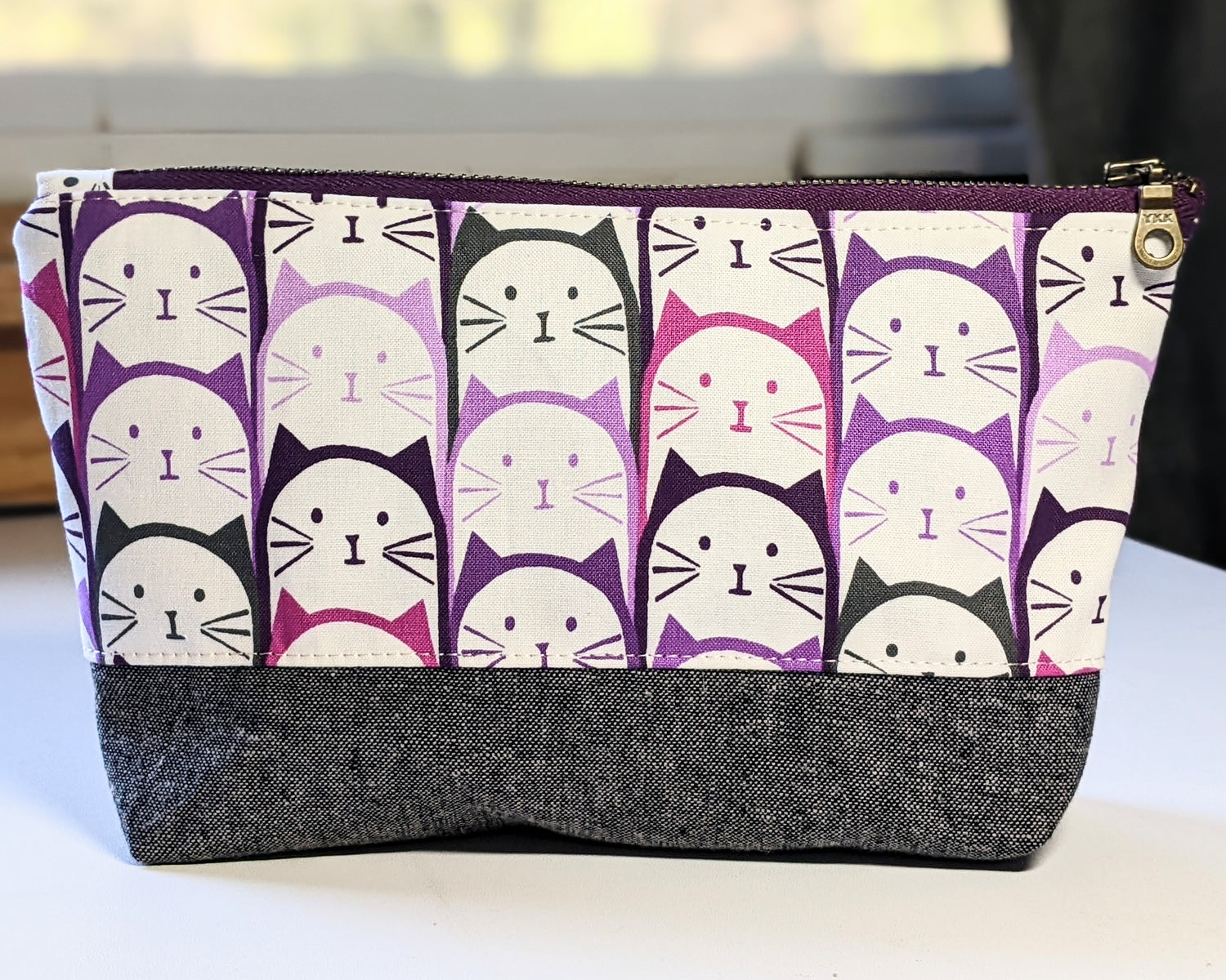 This adorable pouch is the perfect size for a purse or travel bag! Lined with complimentary fabric and equipped with an antique brass YKK zipper.
