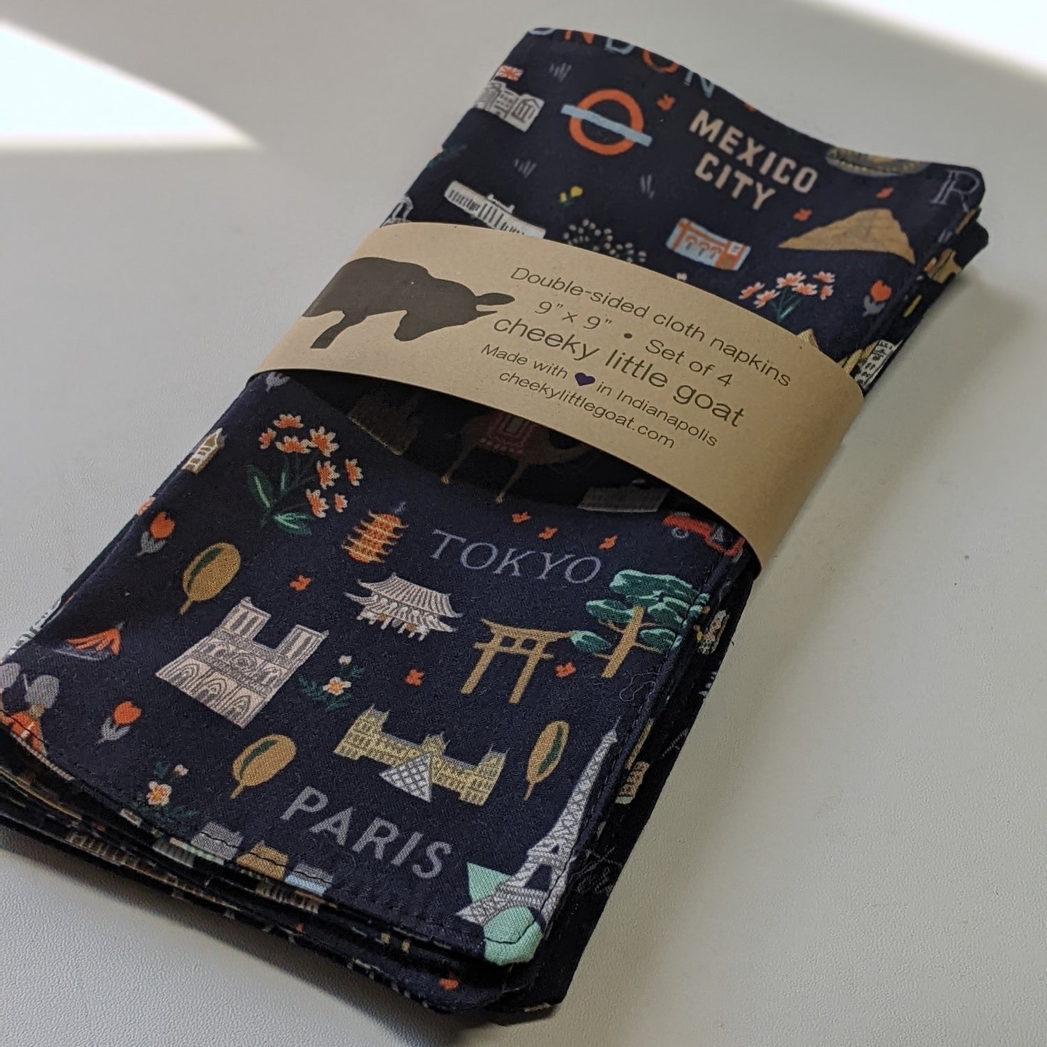 Brighten up your meals with these adorable watermelon napkins! Each pack comes with four 9x9 double sided cloth napkins. Use them for everyday at home meals, a picnic outing, lunch boxes, or spare napkins in your car!