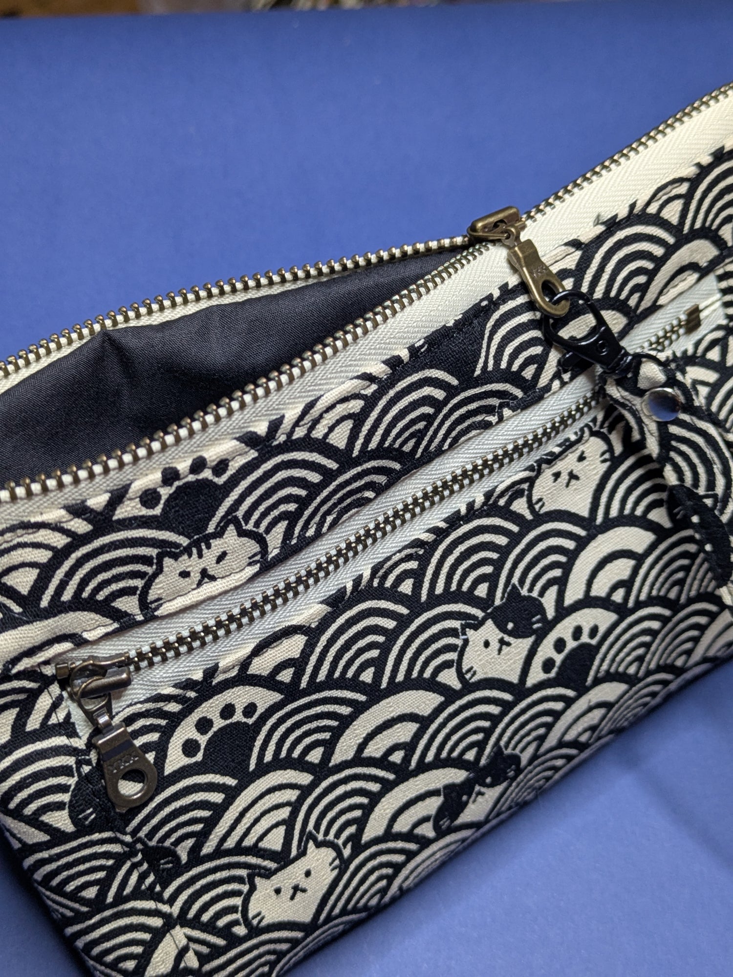 This delicate wristlet features adorable Cosmo Japanese Dobby fabric and metal YKK zippers. Fitted with a simple wrist strap and two pockets, it's the perfect clutch for any occasion.