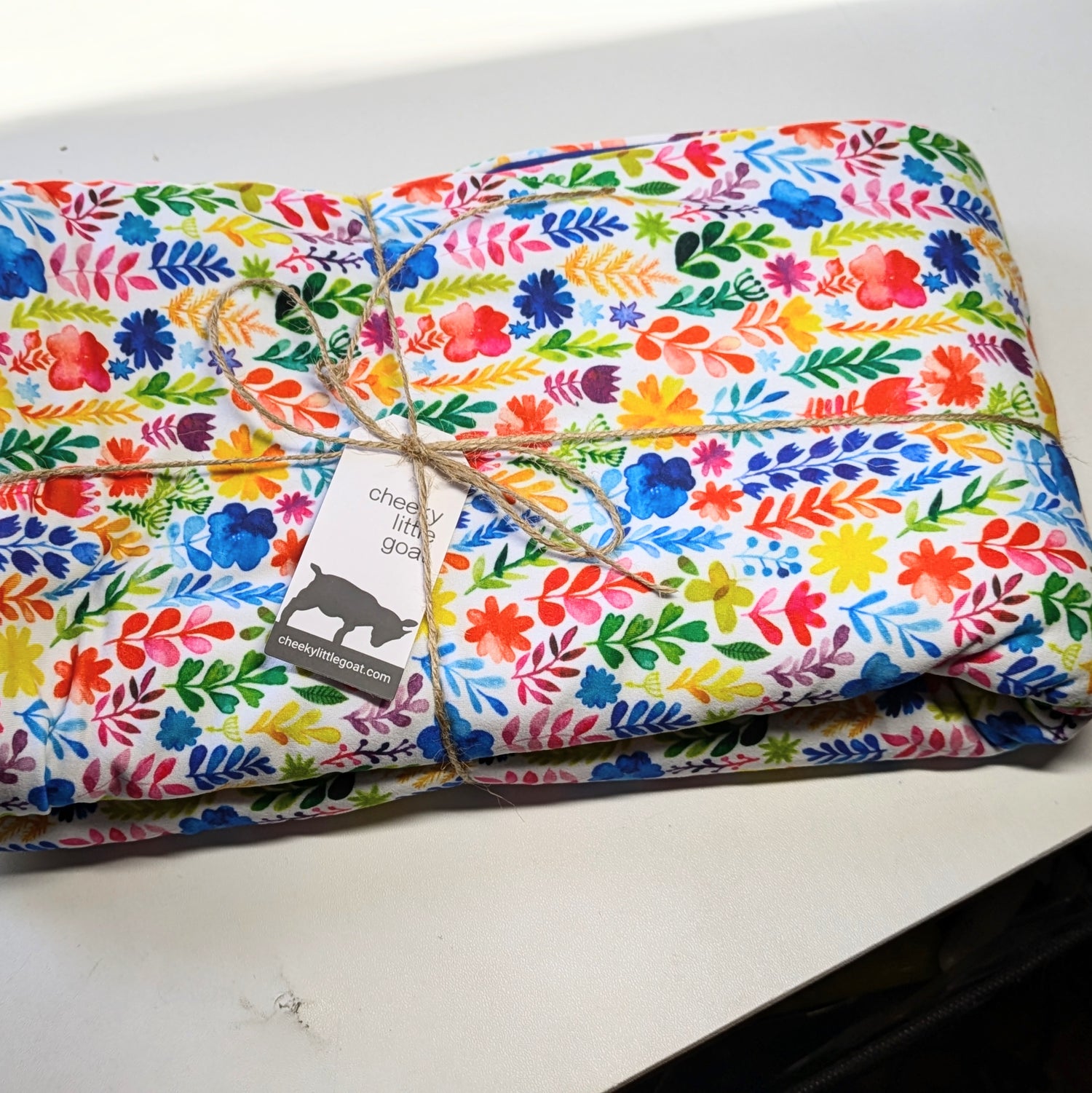 This blanket is double-sided with buttery soft fabric and perfect for snuggling up with on the couch. Lightweight and throw-size, it also makes a great travel blanket for a flight or a trip to the movies.