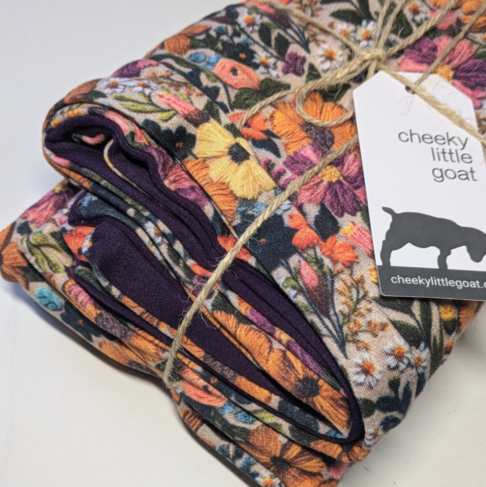 Purples, oranges, blues, purple back