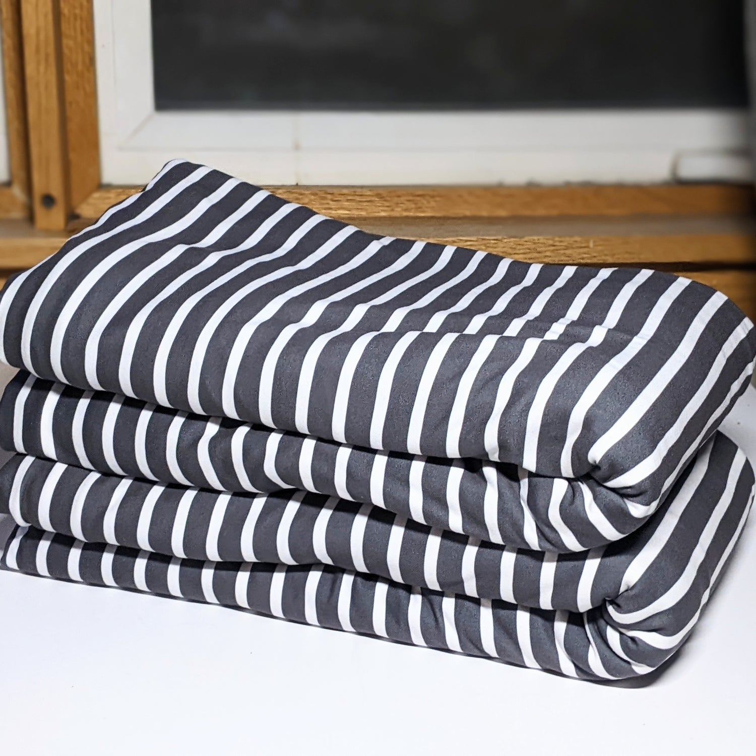 This simple striped blanket is double-sided with buttery soft fabric and perfect for snuggling up with on the couch. Lightweight and throw-size, it also makes a great travel blanket for a flight or a trip to the movies.