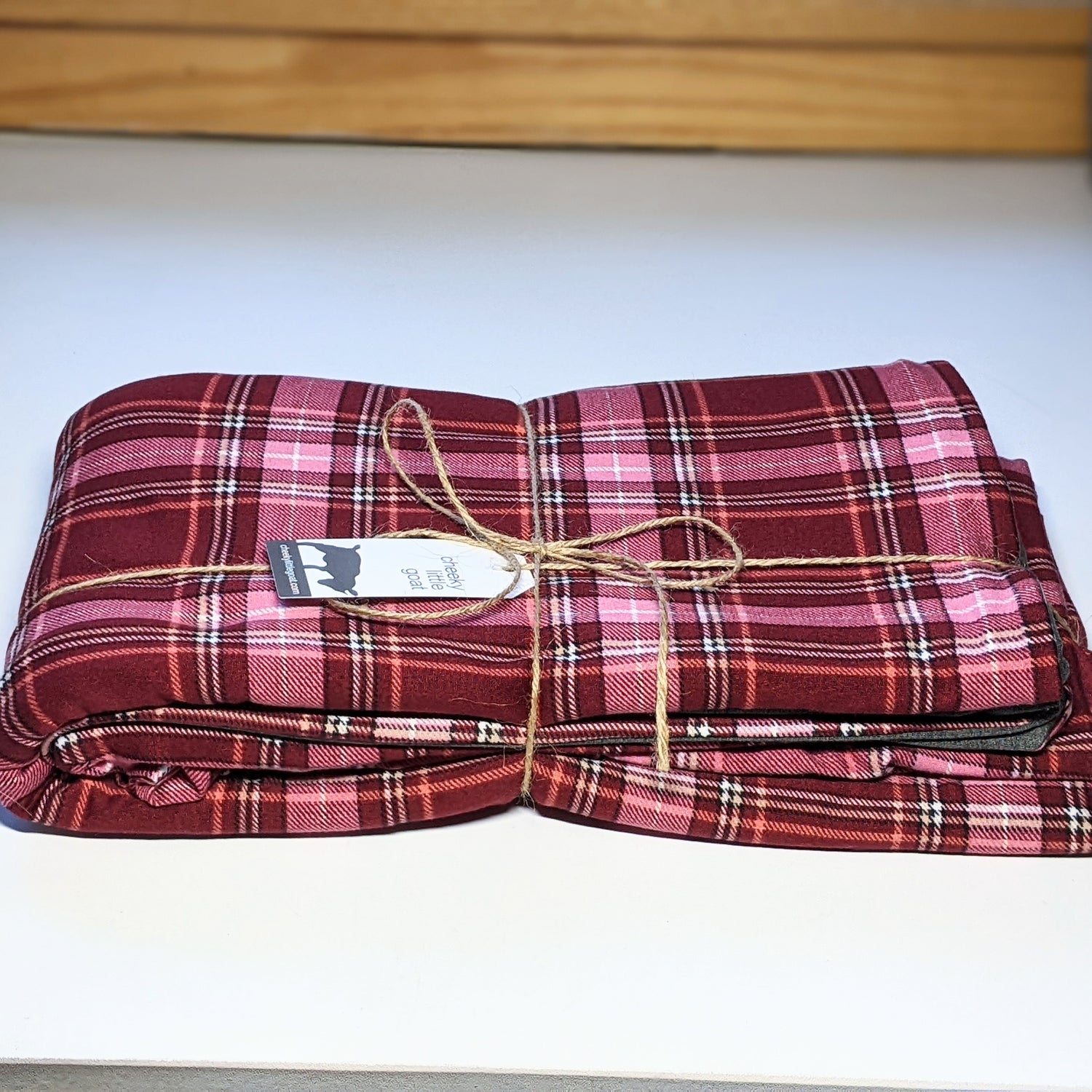 Pink plaid, gray back