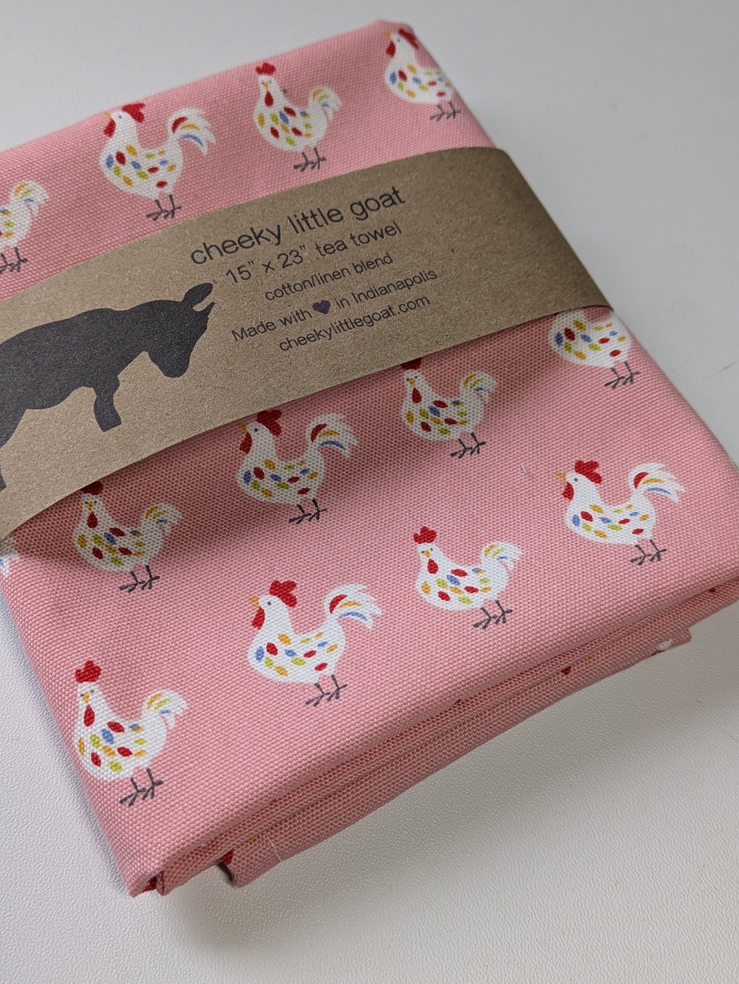 Time to spice up your kitchen with this adorable chicken towel! Made of a linen cotton canvas blend, it will soak up spills while giving you that fun in the kitchen vibe.