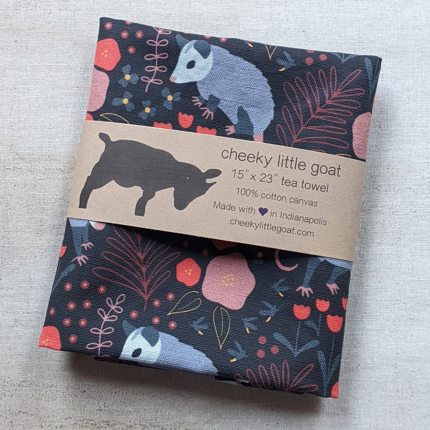 Time to spice up your kitchen with this adorable possum tea towel! Made of a linen cotton canvas blend, it will soak up spills while giving you that fun in the kitchen vibe.