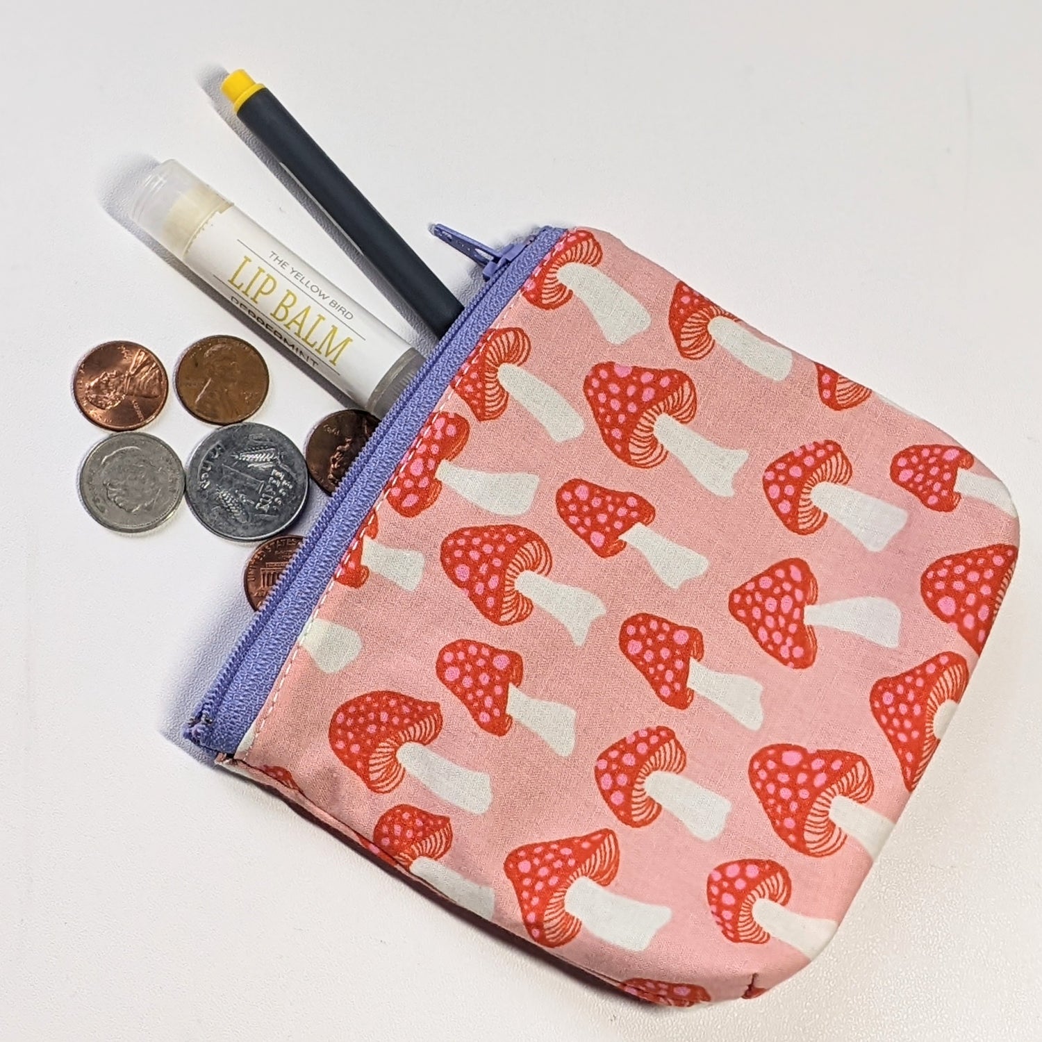 This soft coin purse is big enough for credit cards, cash, chapstick, and a comb. Fully lined and fitted with a boxed bottom, it makes the perfect grab and go when all you need are the basics!
