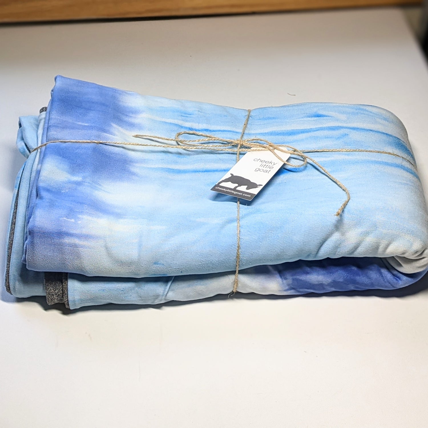 blue tie dye, gray back